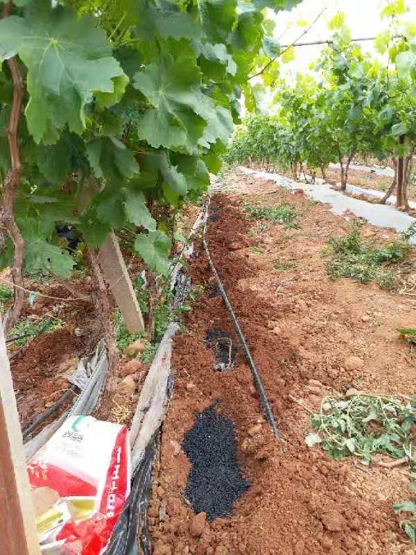 在春季至果實(shí)膨大前,每畝用豐田寶生物有機(jī)肥300400公斤(預(yù)計(jì)產(chǎn)量的10%-15%),溝施于根部?jī)蓚?cè),埋土,壓實(shí),澆透水即可;覆蓋黑色底膜,可促進(jìn)葡萄提前結(jié)果和成熟。果穗落花后澆水時(shí),每畝隨水澆入1公斤慧動(dòng)力,促進(jìn)生長(zhǎng)和提高抗病性。一般1015天澆一次水。