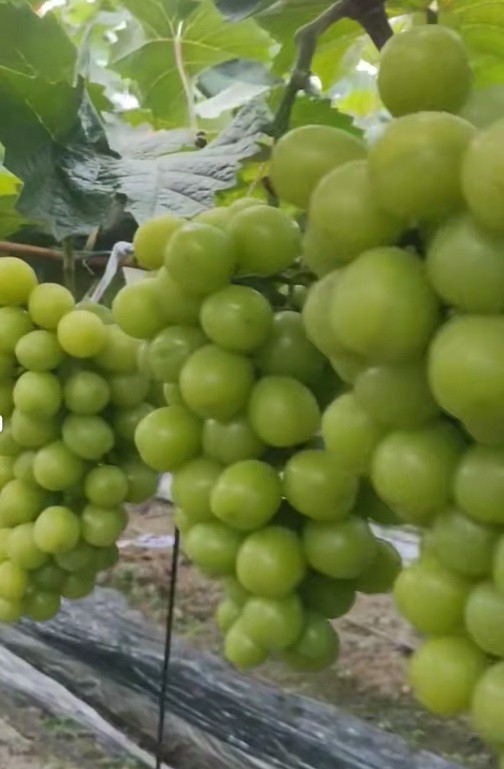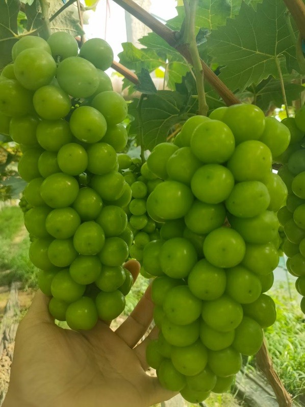 陽(yáng)光玫瑰葡萄是我國(guó)從日本引進(jìn)的新品種,該品種長(zhǎng)勢(shì)較強(qiáng),花芽分化好,新梢結(jié)實(shí)力強(qiáng), 枝條成熟度中等,坐果率高, 產(chǎn)量較穩(wěn)定。果粒著生緊密,橢圓形,黃綠色,果面有光澤,果粉少。果肉鮮脆多汁,有玫瑰香味,鮮食品質(zhì)極優(yōu)。在大棚種植和正常管理?xiàng)l件下, 第1年建園,第2年開(kāi)始結(jié)果, 第3年畝產(chǎn)優(yōu)質(zhì)葡萄1500公斤左右, 第4年以后成齡樹(shù)畝產(chǎn)可達(dá)到3000公斤以上。