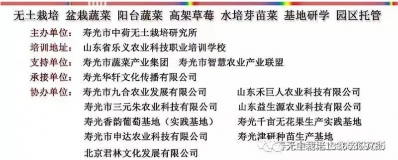 壽光市中荷無土地栽培研究所在壽光市大棚之父王樂義書記的大力支持下,開辦“中國新式農(nóng)業(yè)種植模式--中國式無土栽培和創(chuàng)新農(nóng)業(yè)蔬菜培訓(xùn)班”