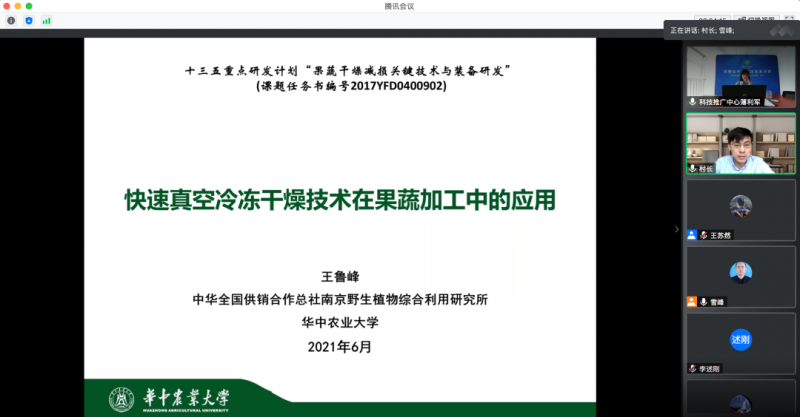 2021年6月,中華全國供銷合作總社科技推廣中心作為供銷合作系統(tǒng)內(nèi)唯一受總社委托開展科技成果管理相關(guān)工作的機(jī)構(gòu),按照科技部《科技成果評(píng)價(jià)辦法》,本著“科學(xué)、獨(dú)立、客觀、公正”的原則,組織七位相關(guān)領(lǐng)域?qū)<乙砸曨l會(huì)議形式對(duì)中華全國供銷合作總社南京野生植物綜合利用研究所、華中農(nóng)業(yè)大學(xué)聯(lián)合完成的“快速真空冷凍干燥技術(shù)在果蔬加工中的應(yīng)用”項(xiàng)目進(jìn)行了科技成果評(píng)價(jià)。