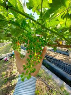 陽(yáng)光玫瑰葡萄移栽后第二年,一般施化肥和普通有機(jī)肥的果園還處在初結(jié)果期,還是以促進(jìn)營(yíng)養(yǎng)生長(zhǎng),使枝條增粗和主枝繼續(xù)延長(zhǎng),為進(jìn)入結(jié)果期構(gòu)建成齡樹(shù)形。施用豐田寶生物有機(jī)肥的果園,葡萄提前1年進(jìn)入結(jié)果期,畝產(chǎn)可達(dá)1500公斤以上,且產(chǎn)品優(yōu)質(zhì)。葡萄主干繼續(xù)生長(zhǎng),植株健壯,實(shí)現(xiàn)第一年建園,第二年盈利的目標(biāo)。