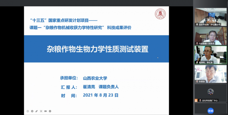 2021年8月,受山西農(nóng)業(yè)大學(xué)委托,中華全國(guó)供銷合作總社科技推廣中心作為供銷合作系統(tǒng)內(nèi)唯一受總社委托開展科技成果管理相關(guān)工作的機(jī)構(gòu),按照科技部《科技成果評(píng)價(jià)辦法》,本著“科學(xué)、獨(dú)立、客觀、公正”的原則,組織七位相關(guān)領(lǐng)域?qū)<乙浴熬€上+線下”形式對(duì)“雜糧作物生物力學(xué)性質(zhì)測(cè)試裝置”成果進(jìn)行了科技成果評(píng)價(jià)。
