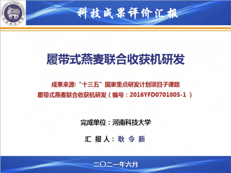 經(jīng)專家組全面審核,與會專家一致同意,由河南科技大學完成的“履帶式燕麥聯(lián)合收獲機研發(fā)”通過科技成果評價。