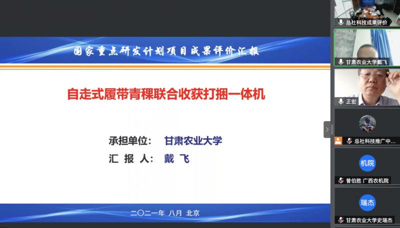 2021年8月,受甘肅農業(yè)大學委托,中華全國供銷合作總社科技推廣中心作為供銷合作系統(tǒng)內唯一受總社委托開展科技成果管理相關工作的機構,按照科技部《科技成果評價辦法》,本著“科學、獨立、客觀、公正”的原則,組織七位相關領域專家以“線上+線下”形式對“自走式履帶青稞聯(lián)合收獲打捆一體機”成果進行了科技成果評價。