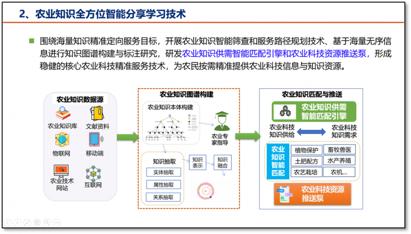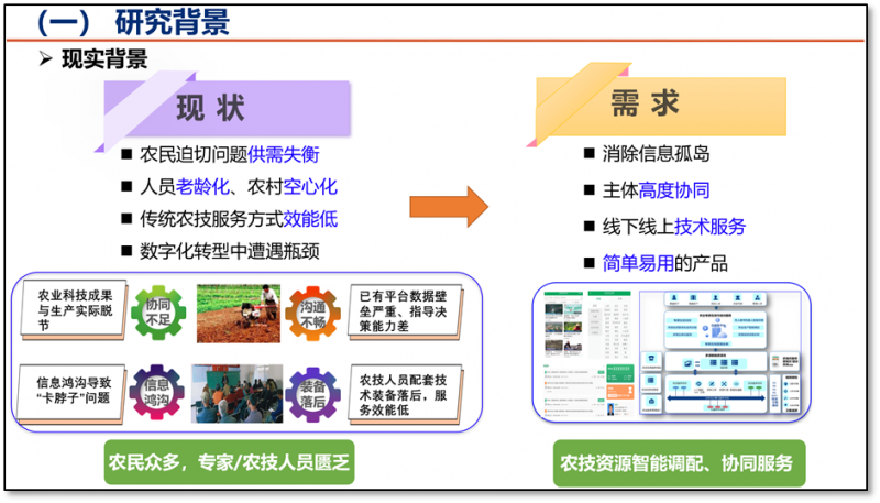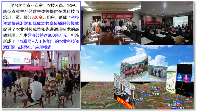 該成果上連國家級農(nóng)技專家資源庫、下達農(nóng)村農(nóng)民一線生產(chǎn)現(xiàn)場,匯聚了豐富的農(nóng)業(yè)技術(shù)問答、實用技術(shù)、主推技術(shù)、標準規(guī)范、在線圖書、培訓課件等數(shù)據(jù)資源,提供農(nóng)業(yè)科技服務供需資源精準匹配和高效調(diào)配,形成了整合國家地方資源的一體化農(nóng)業(yè)技術(shù)服務體系,解決了農(nóng)民問題解答不及時的行業(yè)難點問題,大幅提升農(nóng)業(yè)技術(shù)培訓服務質(zhì)量,具有良好的市場應用前景。該成果整合了全國50萬余名農(nóng)業(yè)專家和農(nóng)技員、10萬條農(nóng)業(yè)生產(chǎn)種植養(yǎng)殖技術(shù)、2600余個農(nóng)業(yè)技術(shù)培訓課件等資源,在江西等5省的10個示范點開展應用推廣,覆蓋4萬畝耕地,產(chǎn)生經(jīng)濟效益800余萬元,打造形成了“互聯(lián)網(wǎng)+人工智能”的農(nóng)業(yè)科技資源匯聚與成果推廣應用模式,取得經(jīng)濟、社會和生態(tài)效益,有助于推動鄉(xiāng)村振興。