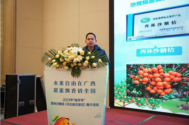 水果自由在廣西,甜蜜飄香銷全國(guó)。12月13日,一場(chǎng)以“桂字號(hào)”西林沙糖桔為主題的推介活動(dòng)在石家莊市成功舉辦。此次活動(dòng)旨在推廣西林沙糖桔這一特色農(nóng)產(chǎn)品,促進(jìn)產(chǎn)銷對(duì)接,推動(dòng)農(nóng)業(yè)產(chǎn)業(yè)發(fā)展。