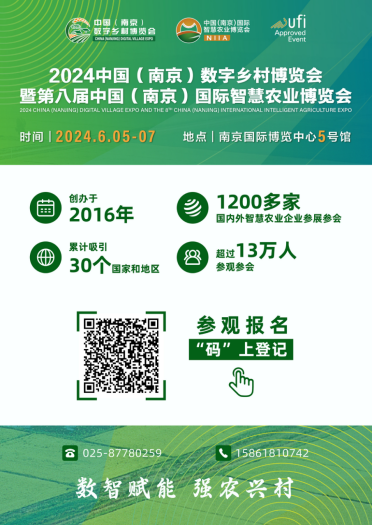 更多行業(yè)熱點資訊和精彩活動,盡在2024中國(南京)數(shù)字鄉(xiāng)村博覽會暨第八屆中國(南京)國際智慧農(nóng)業(yè)博覽會!6月5日至7日,不負春光,赴“寧”啟航。