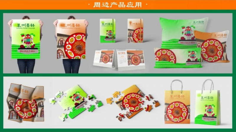 兩幅設(shè)計(jì)圖通過(guò)“生態(tài)”與“美食”的雙向敘事,構(gòu)建起嵐縣馬鈴薯的立體形象:前者突出“生長(zhǎng)環(huán)境的綠色健康”,讓消費(fèi)者直觀感知產(chǎn)品的天然優(yōu)勢(shì);后者彰顯“烹飪技藝的精湛高超”,以視覺(jué)盛宴激發(fā)味覺(jué)聯(lián)想。在設(shè)計(jì)應(yīng)用層面,延伸至文創(chuàng)周邊(如抱枕、手賬本、拼圖)與包裝系統(tǒng),讓“嵐州薯語(yǔ)”不僅是農(nóng)產(chǎn)品標(biāo)識(shí),更成為地域文化的傳播媒介,“小土豆”的文化半徑與市場(chǎng)邊界便被悄然拓寬。
