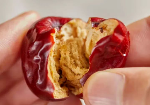 稷山板棗外觀辨識度高,成熟后呈不規(guī)則扁圓形,握感飽滿緊實。表皮未熟時淺紅帶白霜,成熟后深紅如瑪瑙,光滑細(xì)膩無粗糙感。板棗的口感層次鮮明,入口軟糯細(xì)膩無纖維感,甜度溫和不齁,65%-70%的糖分以果糖、葡萄糖為主,嚼時有淡淡棗香與清甜。咽下后回甘持續(xù) 1-2分鐘,余味悠長。相較新疆灰棗的緊實、陜北狗頭棗的甜膩,它更軟糯適中,鮮食、熬煮皆佳,適配各類人群與場景。