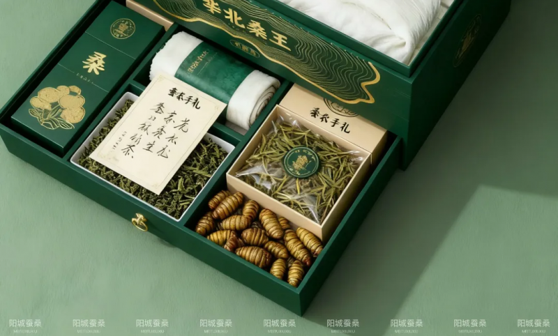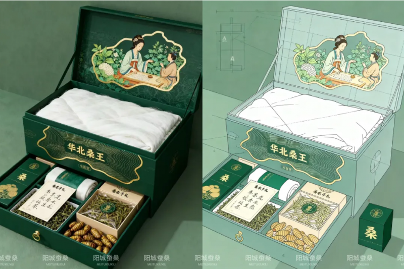 內(nèi)部分層收納蠶絲被、桑葉茶、蠶蛹衍生品等,每類(lèi)產(chǎn)品附上手寫(xiě)體“蠶農(nóng)手禮”小卡,讓包裝從“容器”升級(jí)為“文化載體”,增強(qiáng)消費(fèi)者與家鄉(xiāng)農(nóng)品的情感聯(lián)結(jié)。