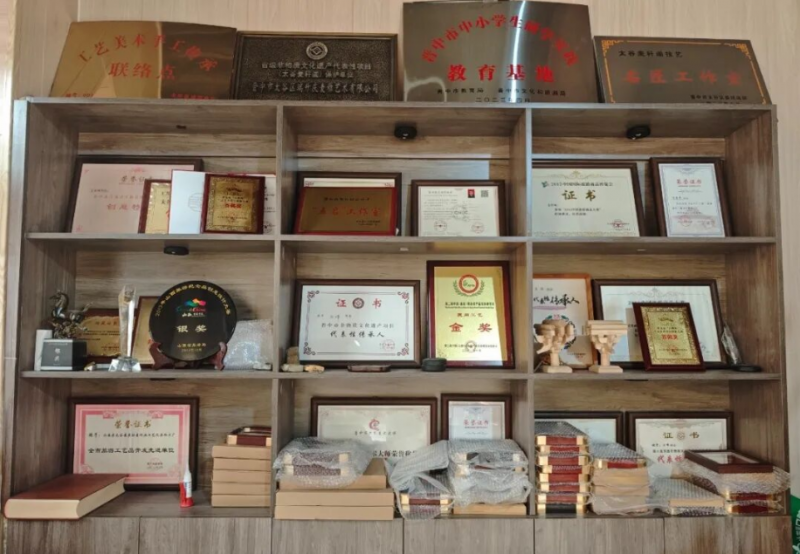 為了傳承這一擁有150年歷史的技藝,當代傳承人王峰將麥稈畫制作工作室遷到古城南大街老字號“瑞升慶”舊址,在實踐中培養(yǎng)了多名第六代傳承人。收集整理了大量相關的文史資料和實物,建起了麥稈畫制作技藝講習所和研學基地,通過非遺進社區(qū)、進校園和農(nóng)村婦女就業(yè)培訓等活動,培養(yǎng)麥稈畫制作人才多名。先后有20多件作品在國家、省市工藝美術大賽中獲獎,第五代傳承人王峰獲“晉中市工藝美術師”稱號。