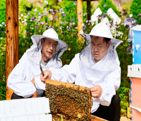 截至2024年底,沁水縣共飼養(yǎng)蜜蜂7.2萬箱,約占山西省蜂群總量的五分之一,年產(chǎn)蜜量2000余噸,產(chǎn)值6000余萬元。培育了1個(gè)國家級(jí)龍頭企業(yè)、11個(gè)省級(jí)龍頭企業(yè)、19個(gè)市級(jí)龍頭企業(yè)、133個(gè)標(biāo)準(zhǔn)化蜂場、29個(gè)觀光休閑蜂場、24家合作社、192個(gè)家庭農(nóng)場、5個(gè)蜂業(yè)企業(yè)。建立了從良種供應(yīng)到冷鏈倉儲(chǔ),從直播帶貨到蜂旅研學(xué),關(guān)鍵環(huán)節(jié)一站式配齊,真正讓“小農(nóng)戶”嵌進(jìn)“大航母”,共享產(chǎn)業(yè)升級(jí)的每一滴紅利。