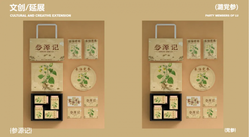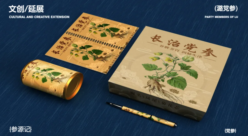 各類文創(chuàng)產(chǎn)品(如筆記本、筆筒、鋼筆,手提袋、包裝禮盒、卡片等)通過(guò)不同載體,多維度傳遞潞黨參的文化與價(jià)值,助力品牌從藥材領(lǐng)域向文化創(chuàng)意領(lǐng)域延伸,加深消費(fèi)者對(duì)潞黨參文化的認(rèn)知與喜愛(ài)。