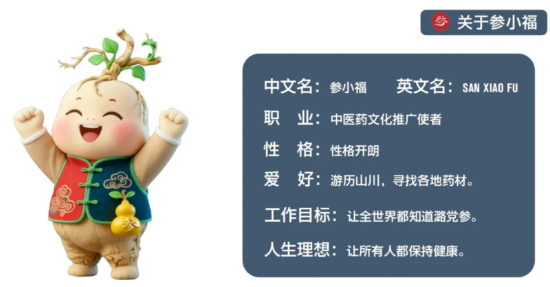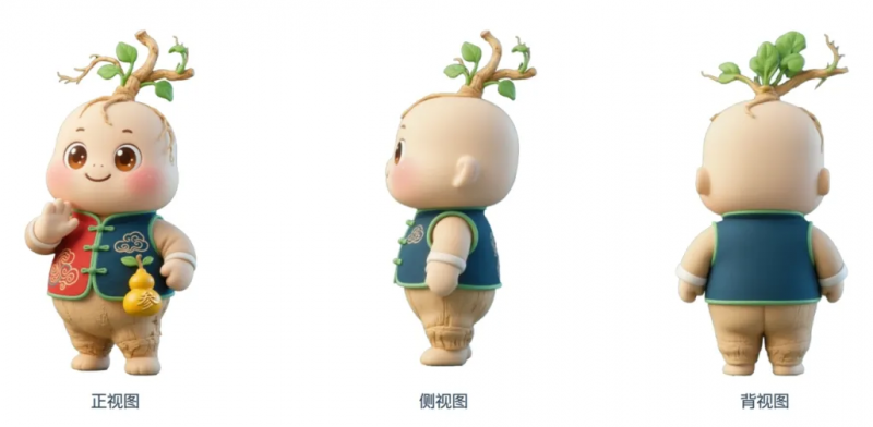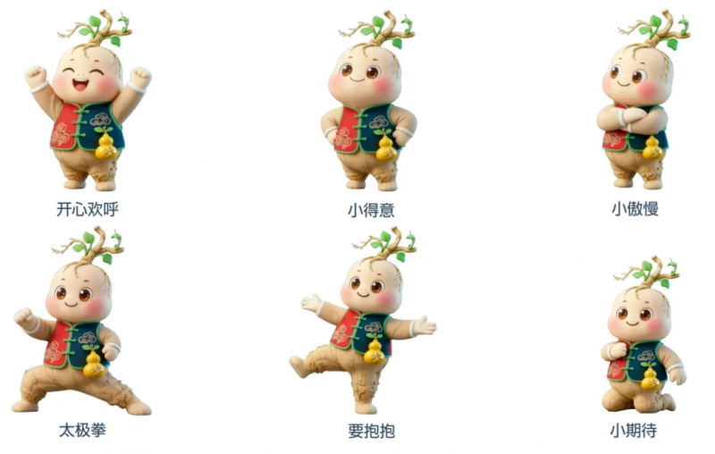 IP形象整體以擬人化的潞黨參為原型,其身體形態(tài)模擬潞黨參的根莖質(zhì)感與形態(tài)特征,呈現(xiàn)出自然、質(zhì)樸的視覺(jué)效果,直觀點(diǎn)明“潞黨參”這一核心主題,讓受眾能快速關(guān)聯(lián)到中醫(yī)藥材本身。