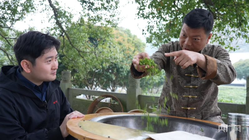 西湖龍井茶制作技藝非遺代表性傳承人展示“梅派技藝”手法(央廣網(wǎng)見習(xí)記者 于東冉 攝)
