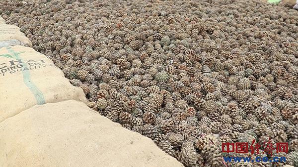 貿(mào)易商從農(nóng)戶處收集松果后,進(jìn)行洗滌、烘干,以免松子在運(yùn)輸途中腐爛?!鞍突固顾晒?月20日左右完全成熟后,開始采摘,大約需要15到20天才能收集齊所有松果。之后進(jìn)行沖洗,洗滌過程需要10到15天,再等15天變干,松果自然會(huì)打開,從中取出松子?!?/span>
