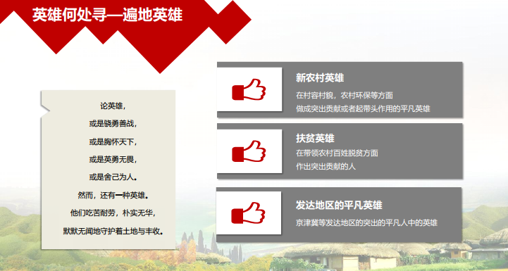 全國各地從農(nóng)村打拼出來,在所處行業(yè)做出突出貢獻或者成績的英雄人物,在國家扶貧攻堅的道路上處處有平凡英雄的身影,小人物匯聚著大力量。