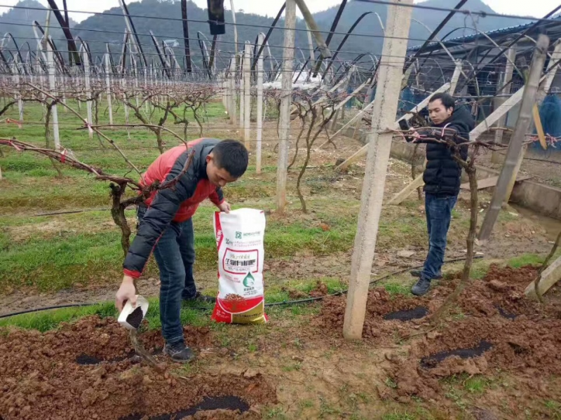 5.1.2 結(jié)果期施肥 在春季至果實(shí)膨大前,每畝用豐田寶生物有機(jī)肥300500公斤(預(yù)計(jì)產(chǎn)量的10%),溝施于根部,土,壓實(shí),澆透水即可覆蓋黑色底膜,可促進(jìn)葡萄提前結(jié)果和成熟。