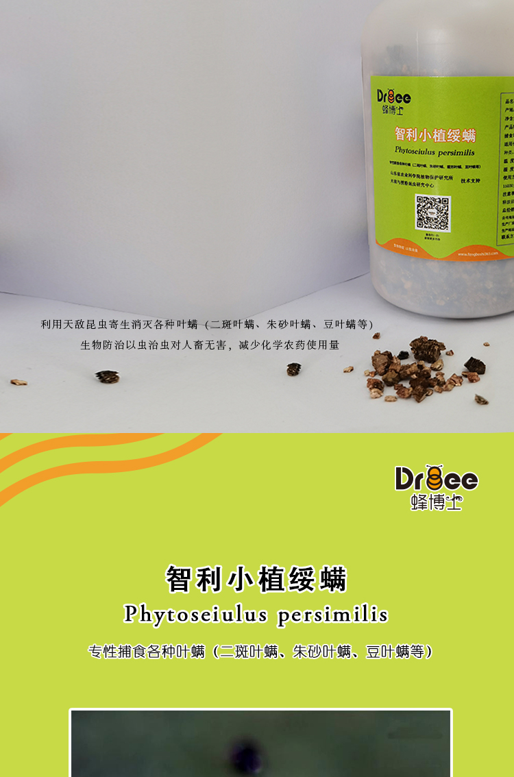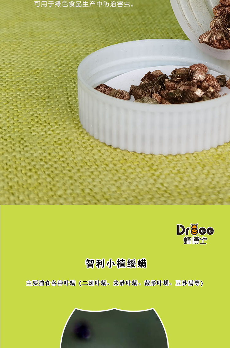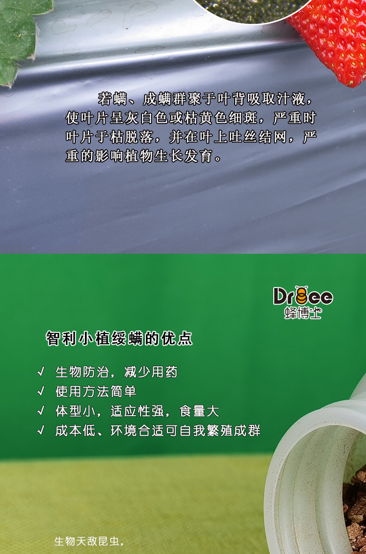 首頁?產(chǎn)品?種植栽培 ? 病蟲災(zāi)害防治?蜂博士生物防治 智利小植綏螨