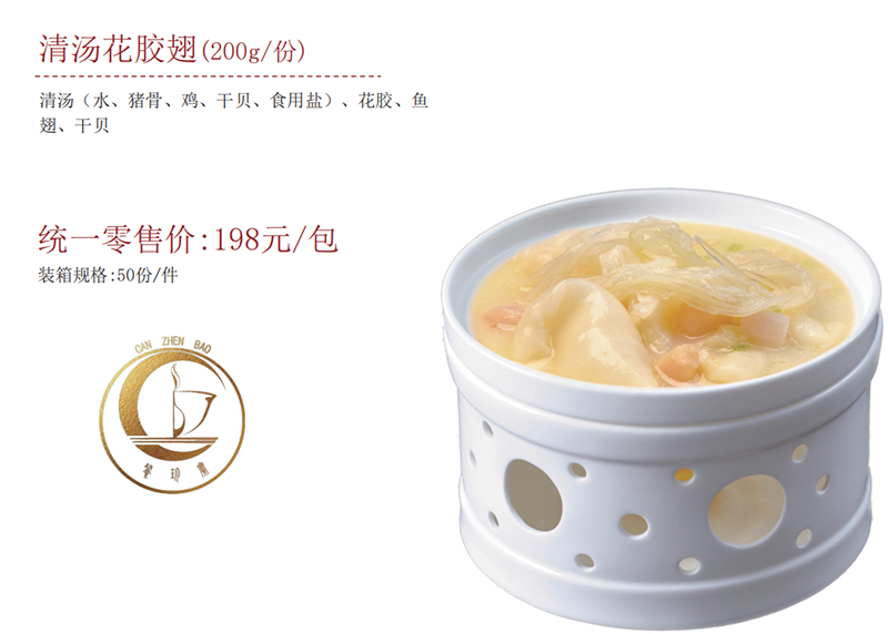 清湯(水、豬骨、雞、干貝、食用鹽)、花膠、魚