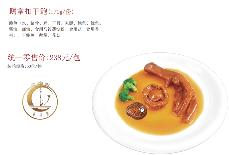 料)、干鮑魚、鵝掌、花菇