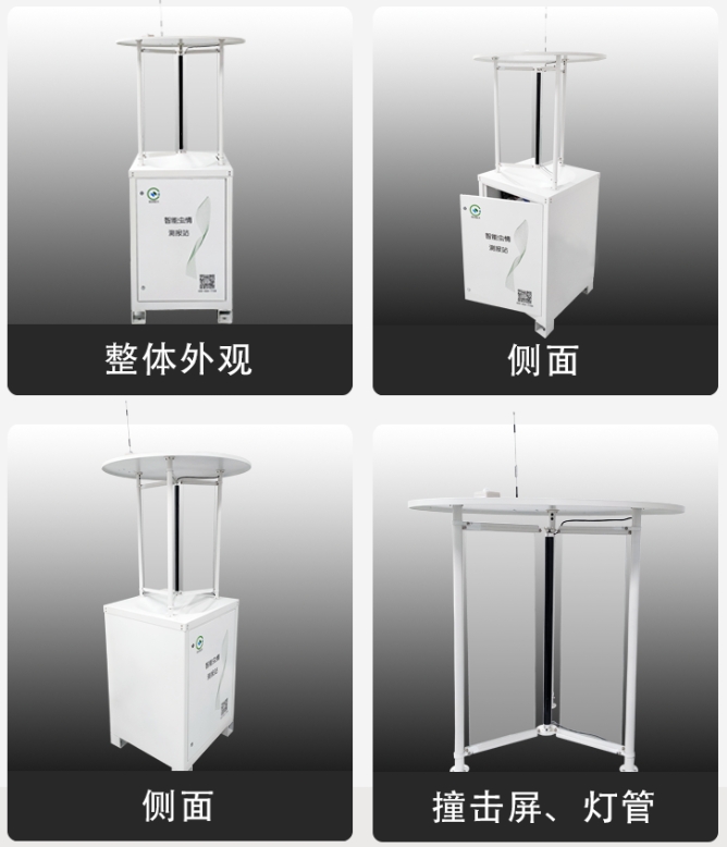 智能蟲情監(jiān)測站是新一代圖像識別式蟲情測報工具,利用現(xiàn)代光、電、數(shù)控技術(shù)及害蟲的趨光天性,對害蟲進行誘殺,實現(xiàn)蟲體的收集和處理等功能,在無人監(jiān)管的情況下,能自動完成誘蟲、殺蟲、蟲體分離、收集、拍照、識別、排水等作業(yè),并可自動將蟲害數(shù)據(jù)傳輸?shù)奖O(jiān)控平臺,對蟲害的發(fā)生、發(fā)展進行監(jiān)測分析和預測,以及蟲情發(fā)生概率的預報預警,為農(nóng)業(yè)綠色防控提供現(xiàn)代化監(jiān)測手段,可廣泛應(yīng)用于:大田、果園、茶山、林業(yè)、牧業(yè)等多種場景,實現(xiàn)了害蟲的誘集、分類統(tǒng)計、實時報傳、遠程檢測、蟲害預警和防治指導的自動化、智能化。