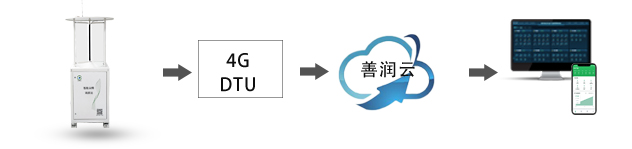 通過RS485轉(zhuǎn)接4G通訊模塊,進行無線傳輸,數(shù)據(jù)可上傳到善潤云平臺,通過我司服務(wù)器讀取數(shù)據(jù),也可上傳到用戶自有平臺,通過電腦端軟件或者手機APP進行數(shù)據(jù)實時查看。