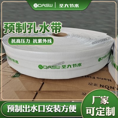 圣大節(jié)水農(nóng)田灌溉PE預(yù)制孔水帶,采用全新PE料生產(chǎn),規(guī)格有3寸、3.5寸 、4.5 常用間距60cm,其他間距可以根據(jù)客戶需求定制。