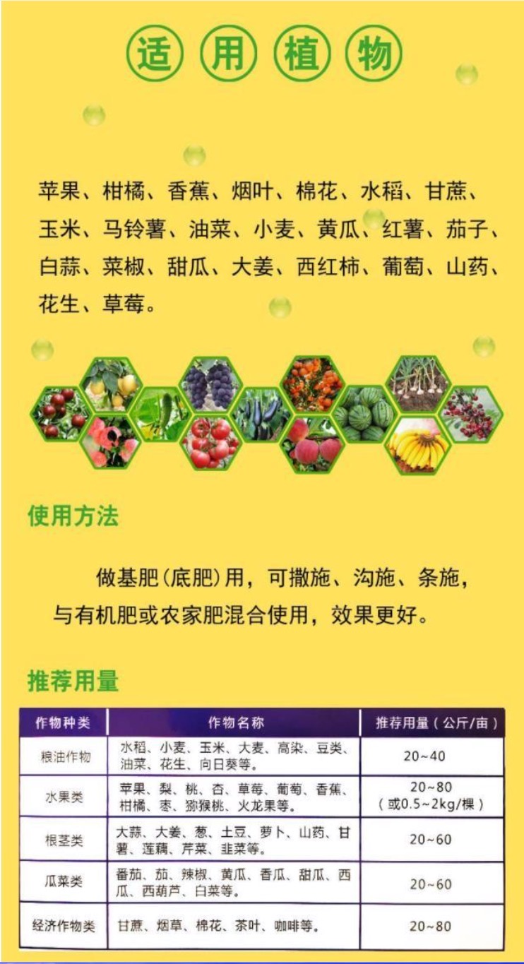 ?產(chǎn)品規(guī)格:25kg/袋 型號:粉劑 用途范圍:適宜酸化土壤